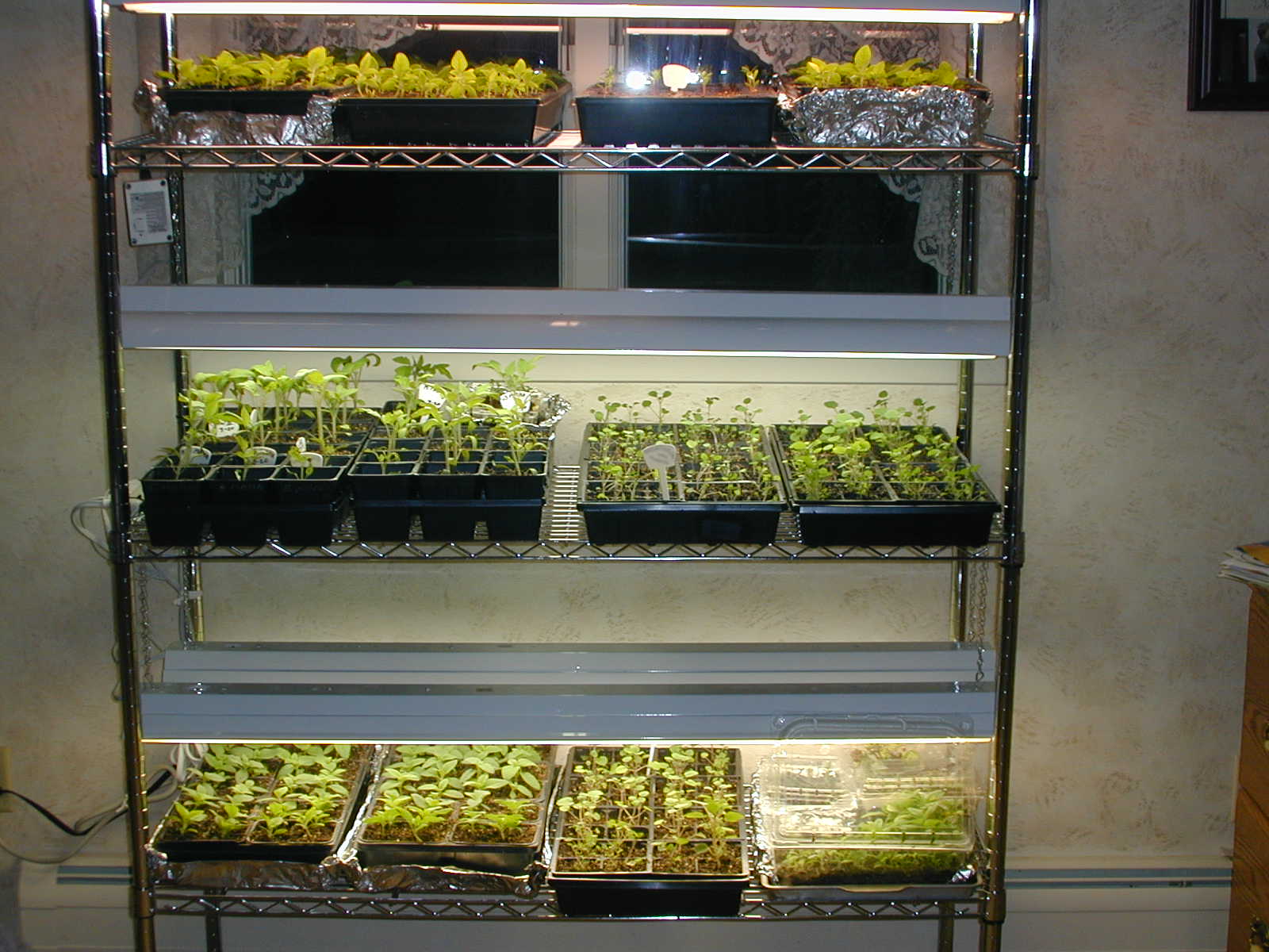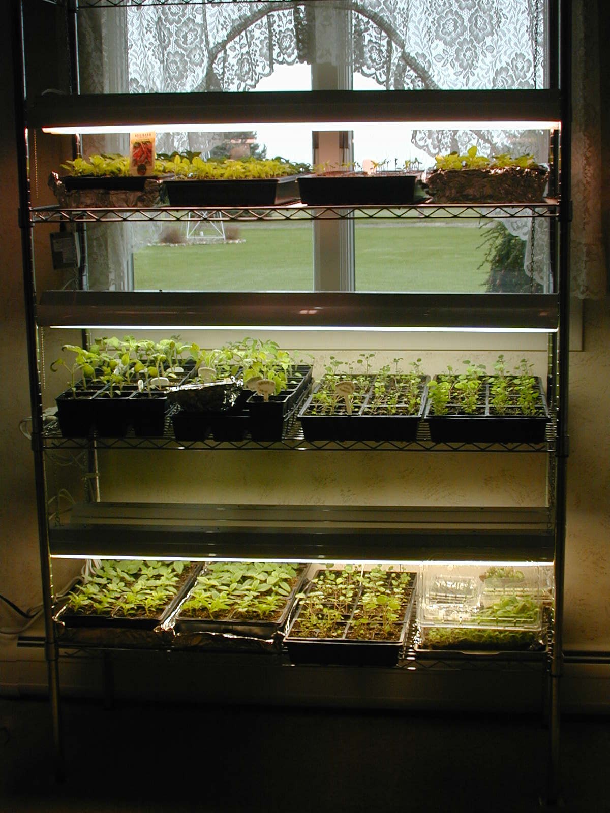 If you have a south facing window that also works quite well. I have put seedling trays on TV trays in front of the window but they will grow toward the light and have to be turned several times each day. If the sun doesn’t shine for several days you will quickly end up with very weak, leggy plants.