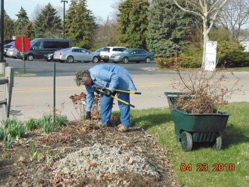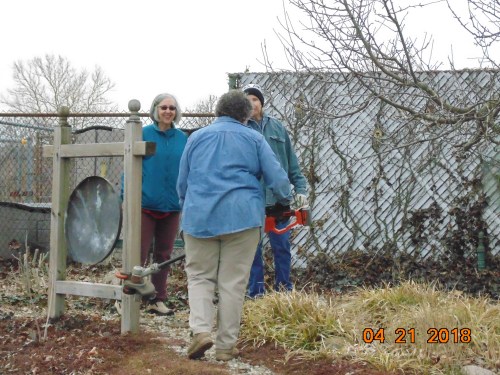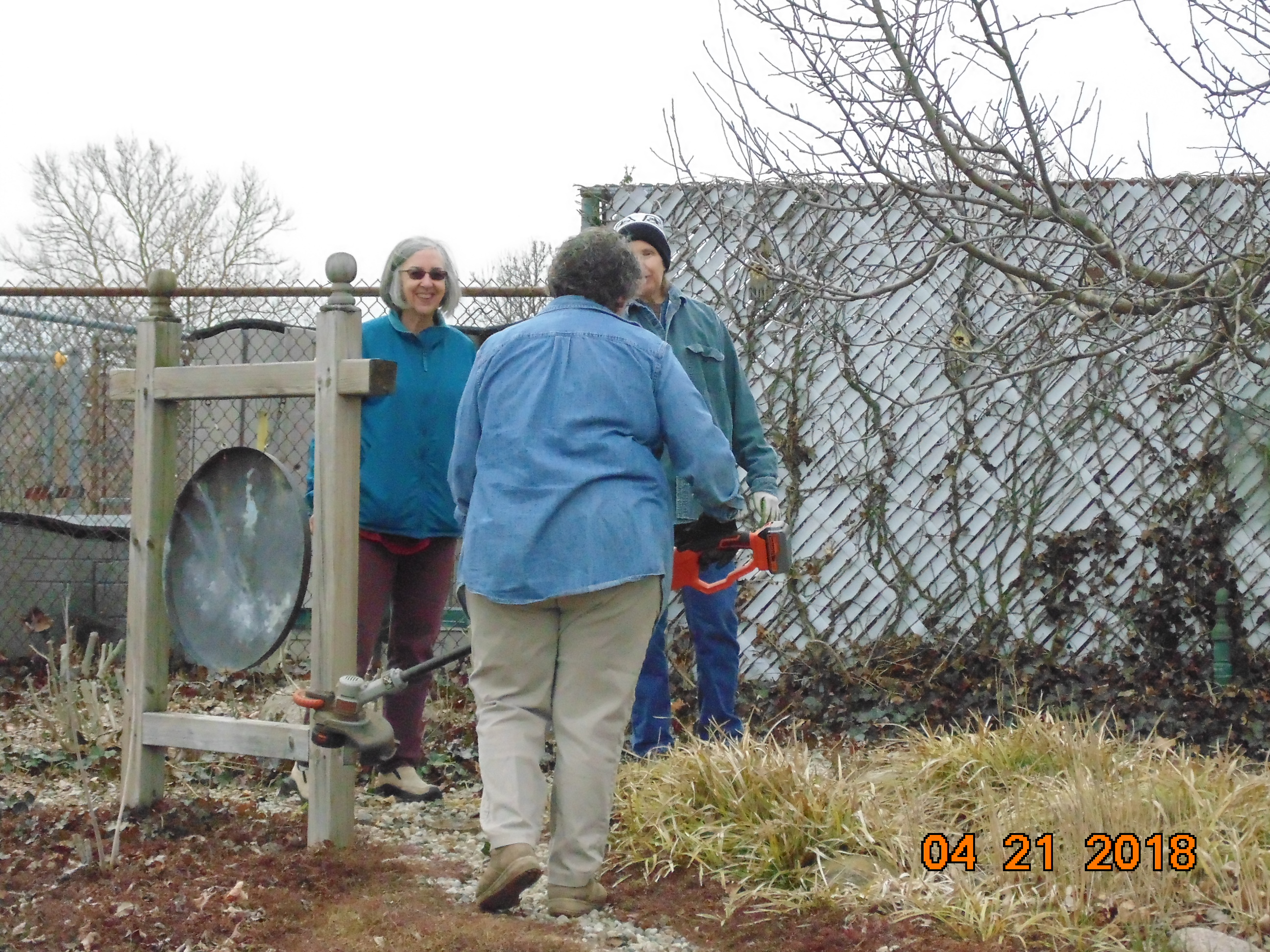 Master Gardeners work to clean up the various areas of the gardens as the plants began to re-awaken.