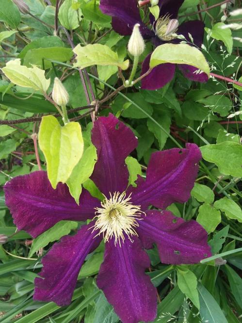 My favorite clematis; It is a long bloomer. First Blooms in June and usually continues till fall. I can’t recall it’s name.