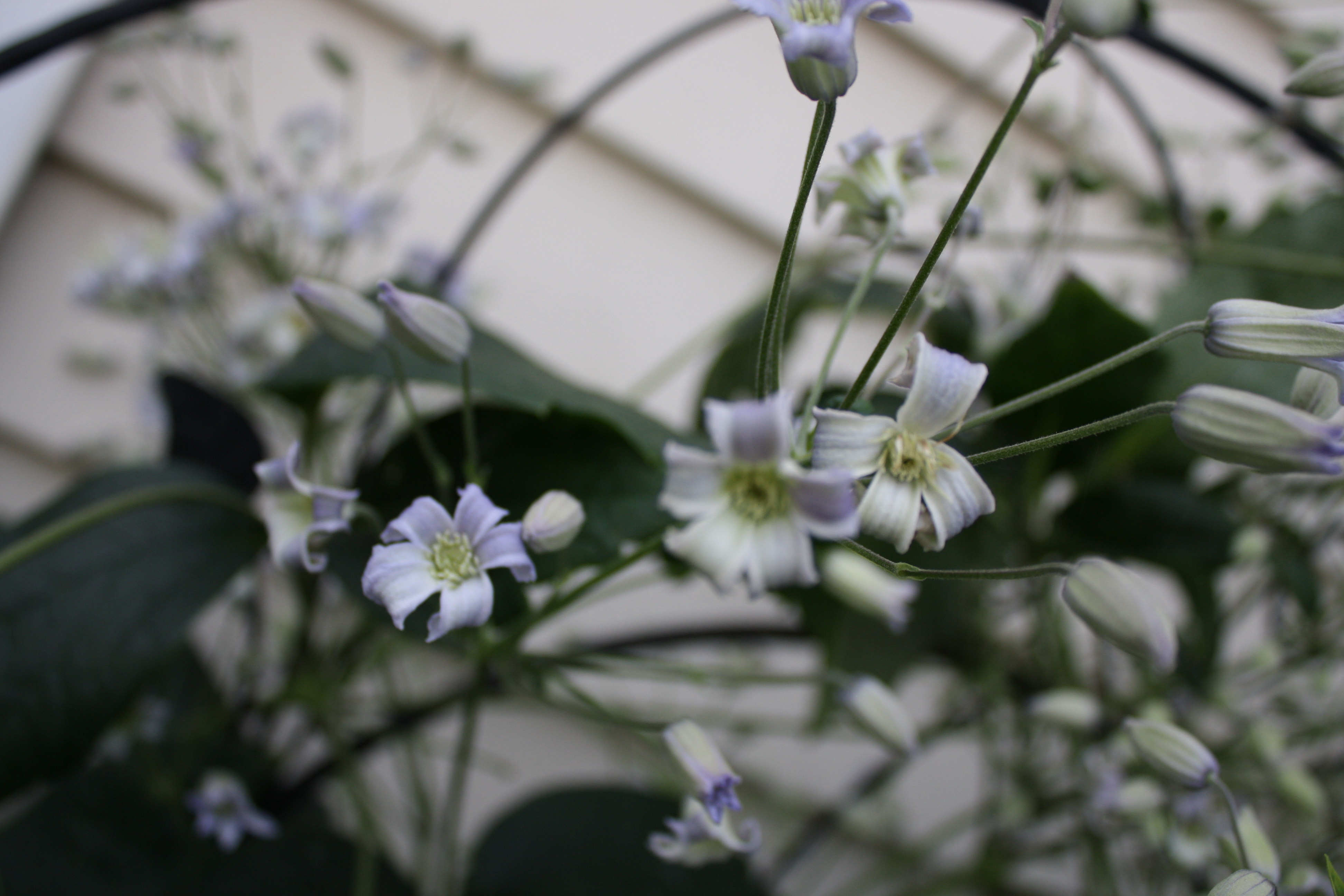 Thanks for the comment Gail…yes this is the clematis on the side of my house…a few photos for all to understand. These were taken in 2011, just before we toured my garden…it has increased in size and always has tons of blooms.