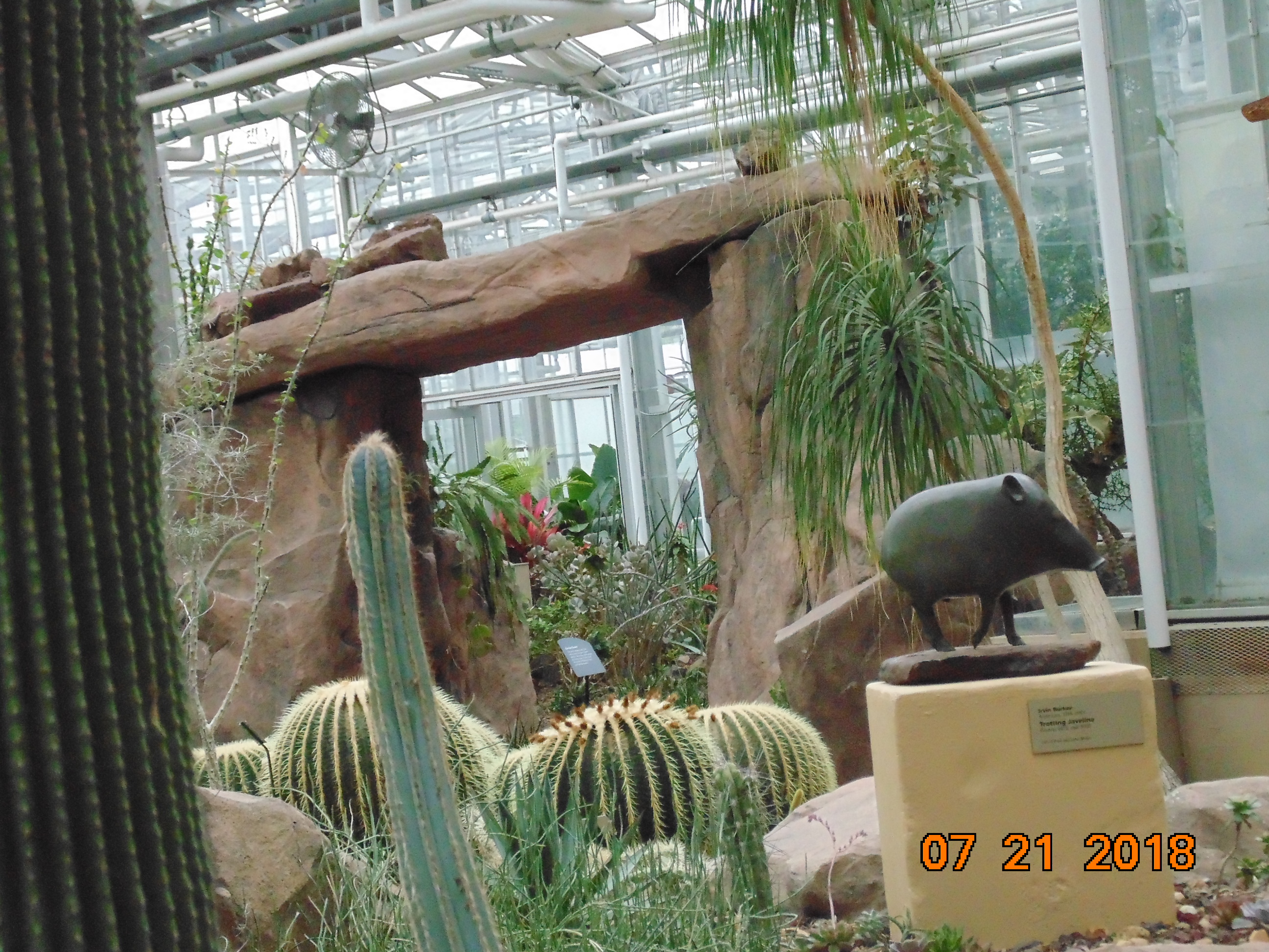 We will henceforth notice how the sculptures inside the conservatory are chosen to enhance the plants, like armadillos and a javelina in the Western Hemisphere arid room.