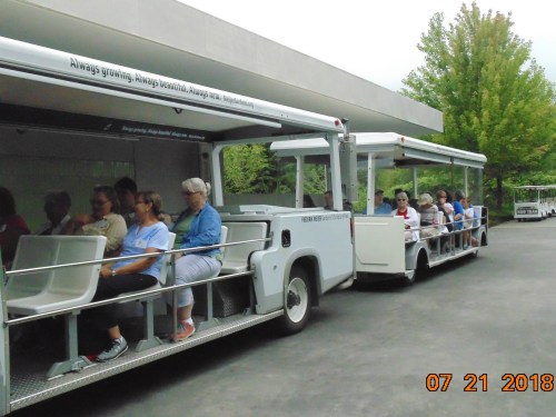 The tram was well worth taking as an overview of the outdoor display areas and helped us decide to return to the American Farm garden and the expansive new Japanese garden, before finishing up in the Children’s garden, our senses already overwhelmed even before we saw the oversized tongue, nose and ear denoting the sensory garden areas in it.