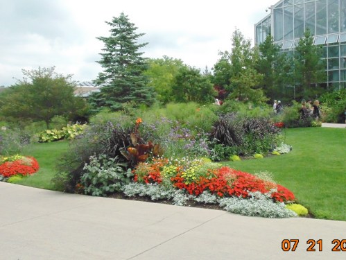 We were wowed by the knockout colors of the grand entrance flowerbeds as we drove into Meijer gardens. Apparently the plan is to continue the wow right up to the doors of the conservatory but that part is currently under construction.