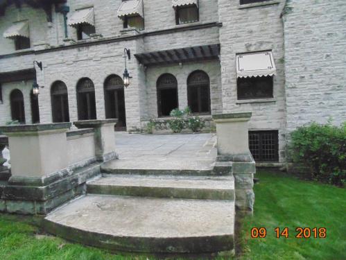 We continued our trek across the back of the house which faces the river. In an earlier photo, you saw the “blue garden” The house is also under renovation, this is a view of the rear and the side of the house.