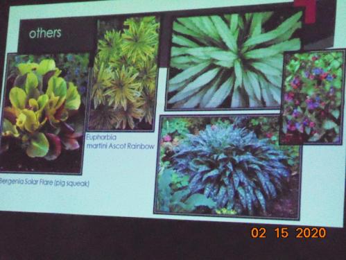Using photos of her own garden to give examples-Linda’s talents in this field were visually obvious; we all enjoyed seeing the impact foliage could make in all aspects of our gardens.
