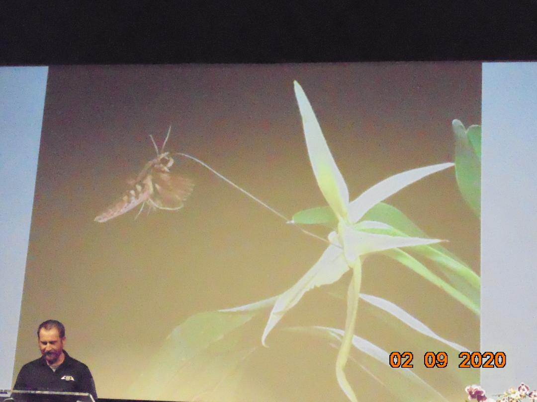 he shared how orchid flowers have evolved and vary to lure in specific pollinators. This one below