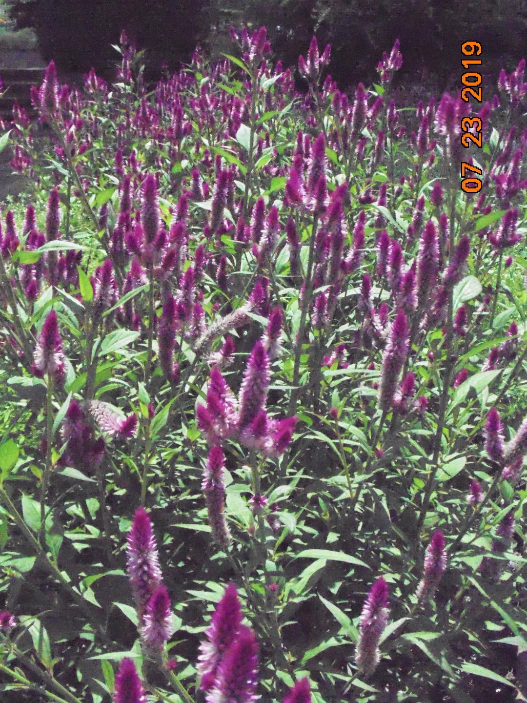 In a partially shaded area, despite being slender, the color- bright fuchsia, drew our eyes up and to the forefront of the dark shaded background;
