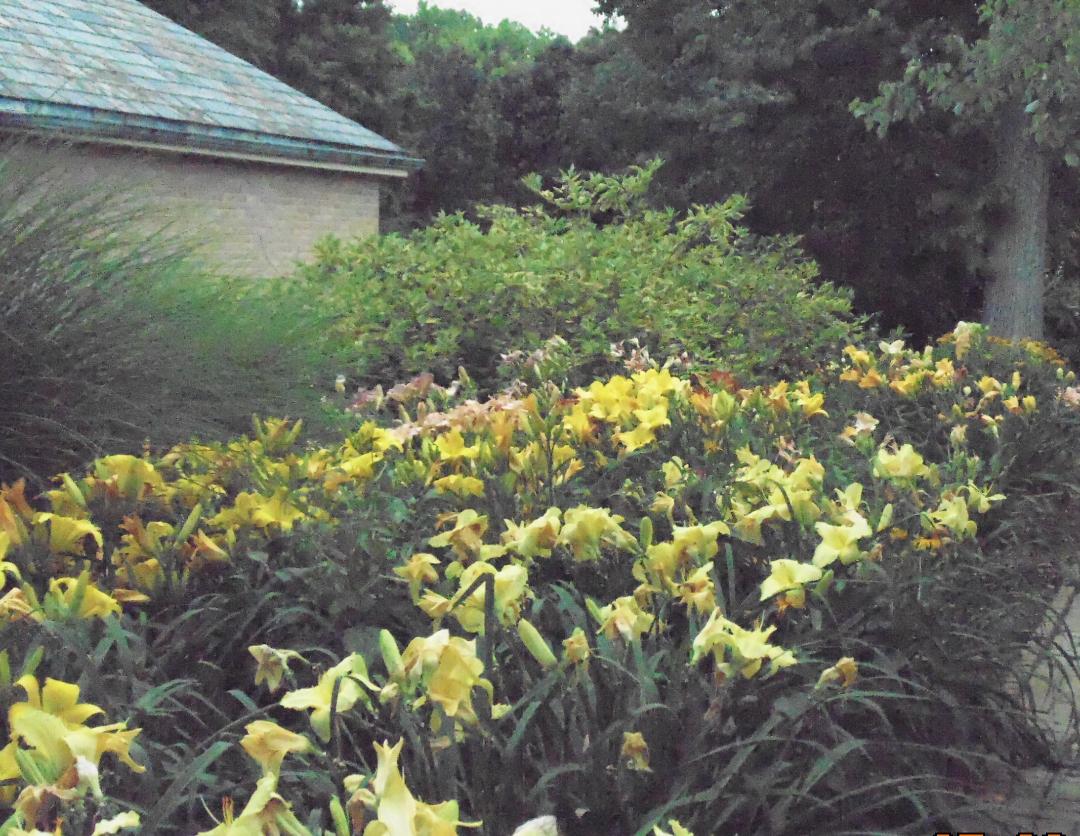 However, the mass grouping of Daylilies had a calming effect; with soft pastel colors of yellow, white