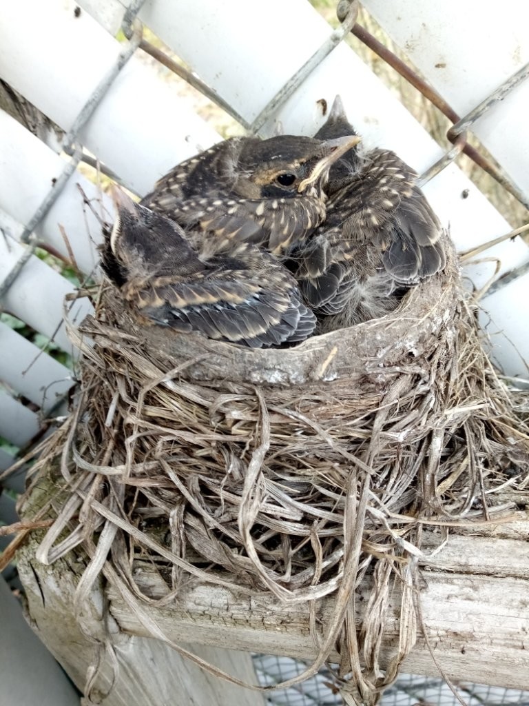 In the Meantime, the Robins built a nest on my shed arbor…I wasn’t happy, however, I left it. They have now left the nest and I will be taking this one down. Robins have been known to come back to the same nests and or nesting area each year. I’m sure this is the Robin that used my vertical garden last year.