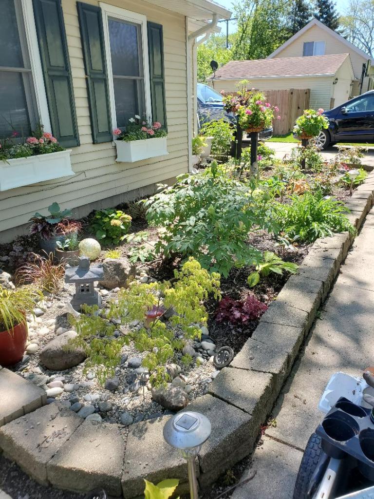 There was significance to the items I planted. Roses are for my sister in law Rose, the lilies are for my sister in law Lillian. Both recently pasted away less than a year. I intentionally used a lot of purple blooms. That is for my sister, Christine, and long time friend Brenda who are both suffering with Alzheimer’s. I call this my Dedication Garden.