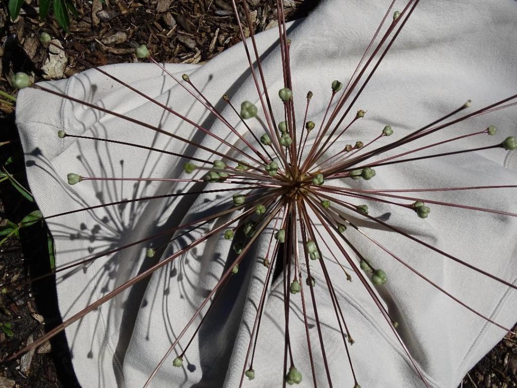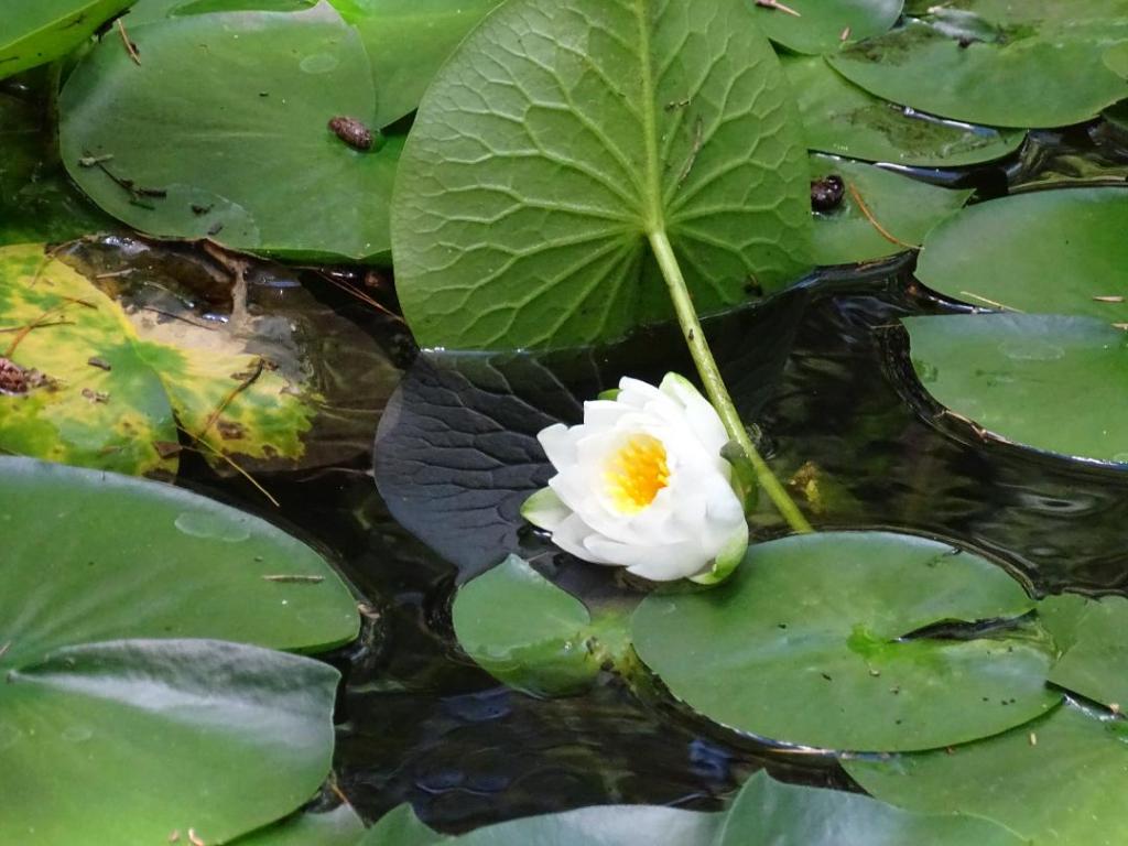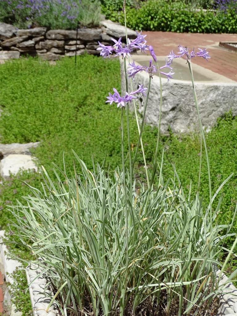 even the water lily reaches out of the cool water to catch some warm rays of sunshine; while the garlic sways in the daylight.