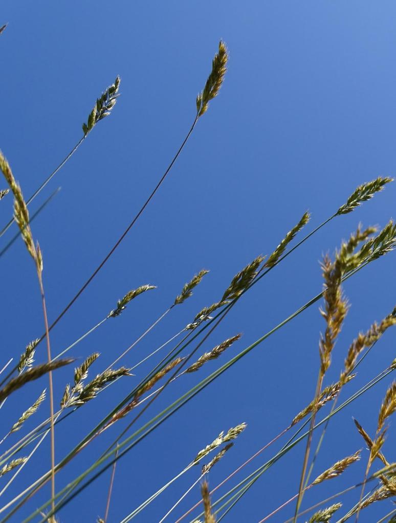 The lily looking down at its feet while the delphinium reach up to the sky– contrasting with the blue of the sky.