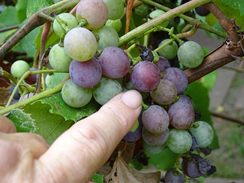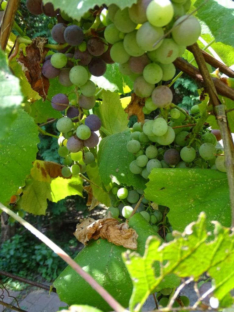The vines are loaded with clusters of grapes in various stages of ripeness. I am going to try this one-