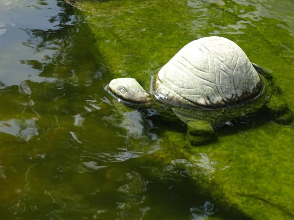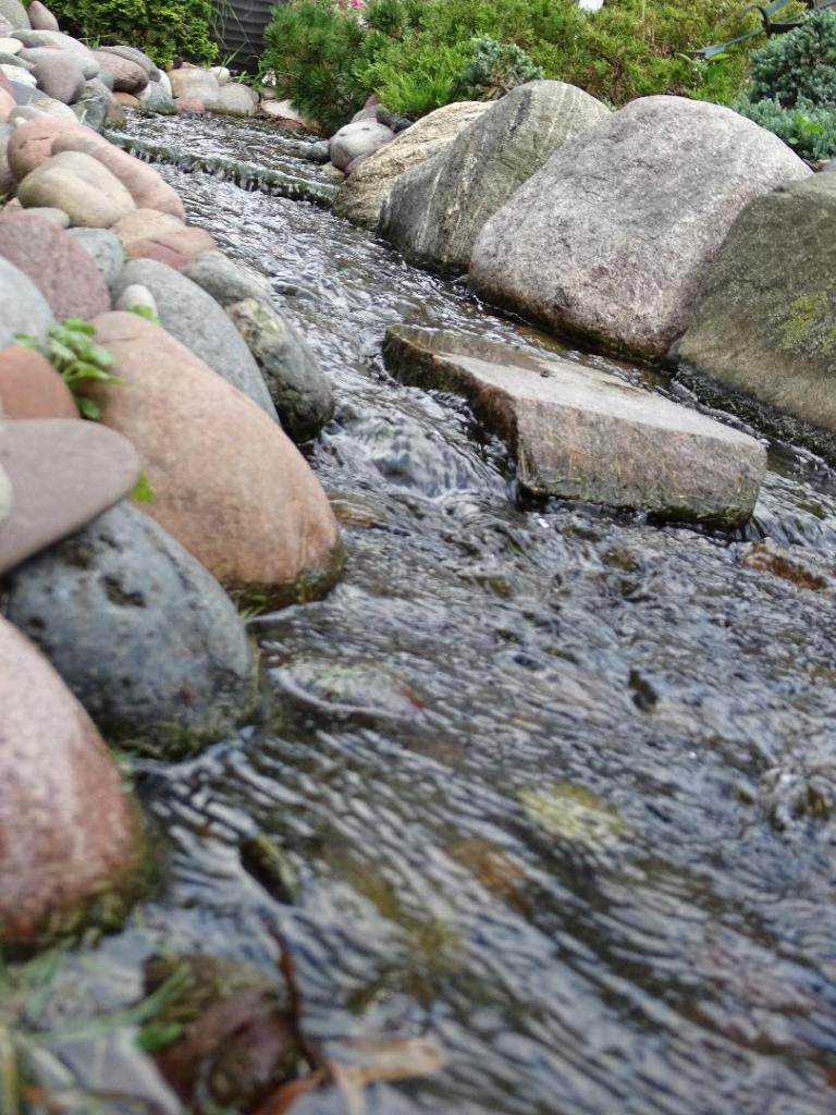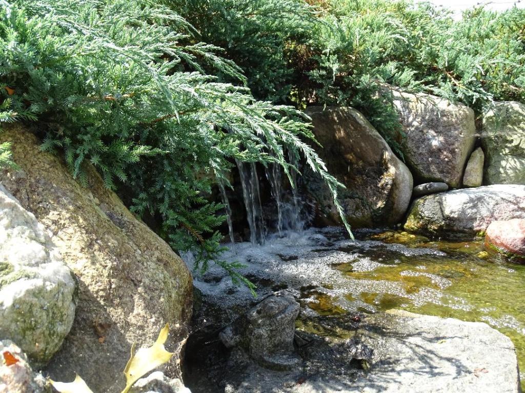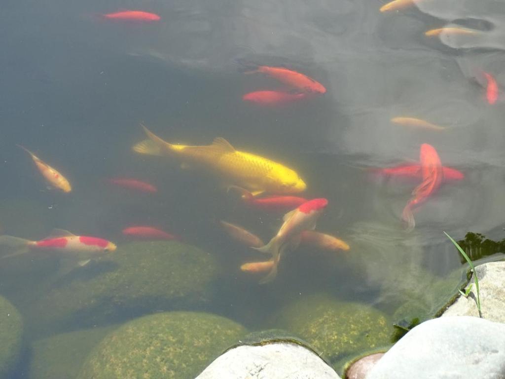 There are several features within the pond area. The KOI, a waterfall, the stream, a herb garden and the walkway.