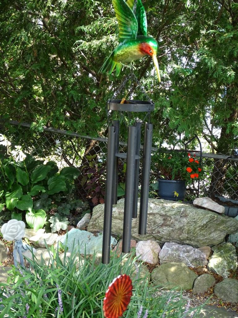 hearing the jingle jangle of wind chimes which hang nearby.