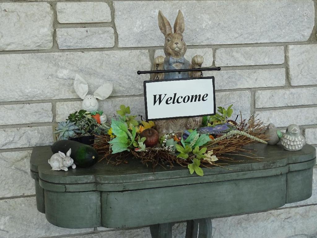 as if to wave a greeting to anyone passing by or to visitors walking to the front entry of the home.