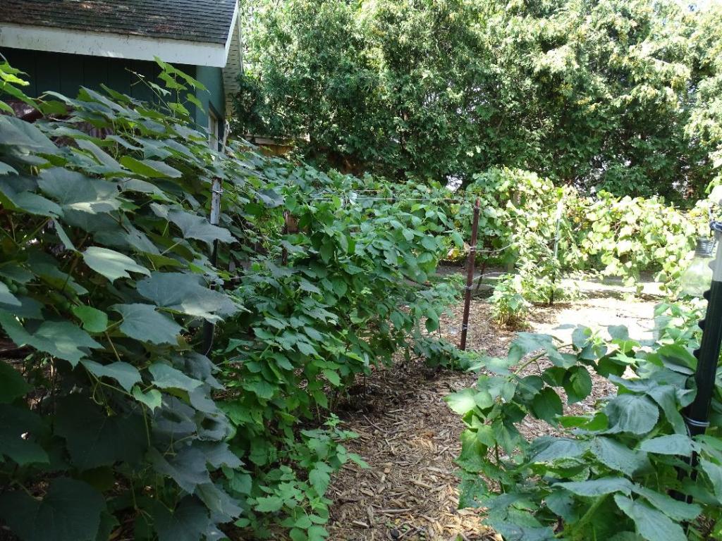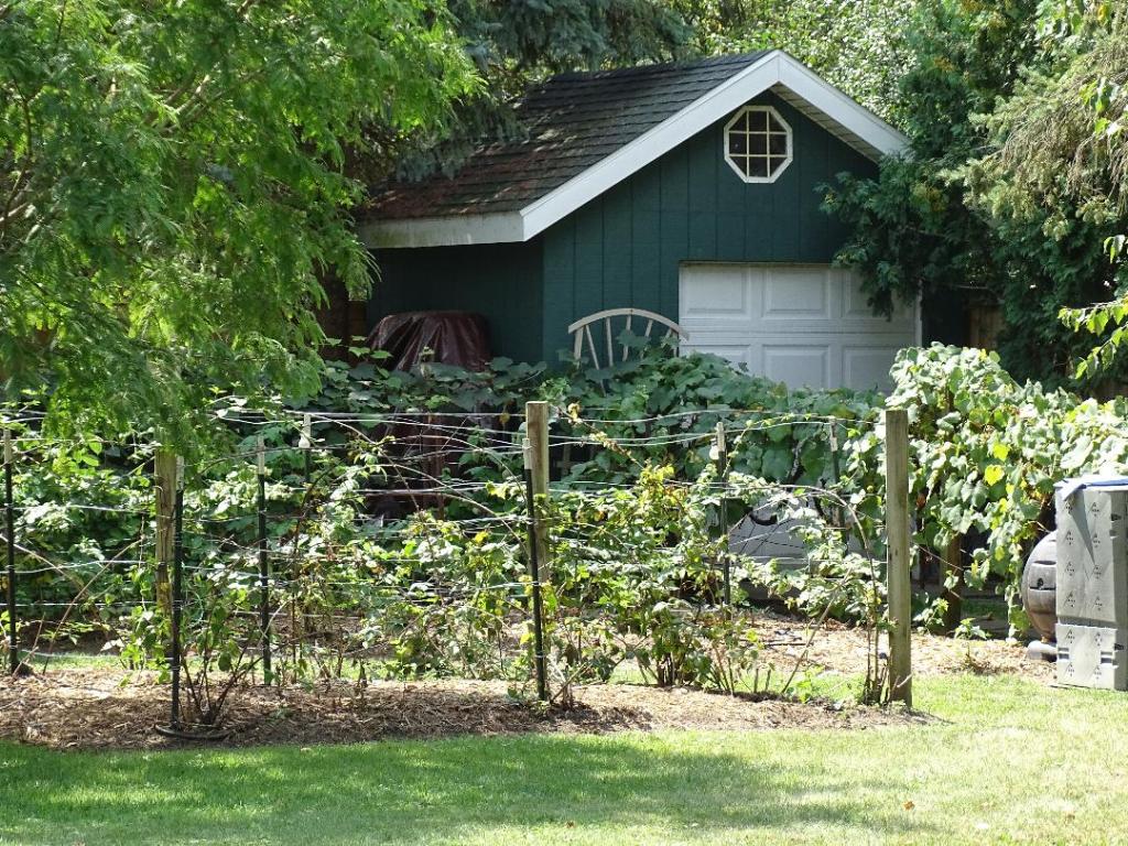 A large yard allows Michelle to have a wide variety of plantings. Vineyards, flowers, shrubs & conifers; along with