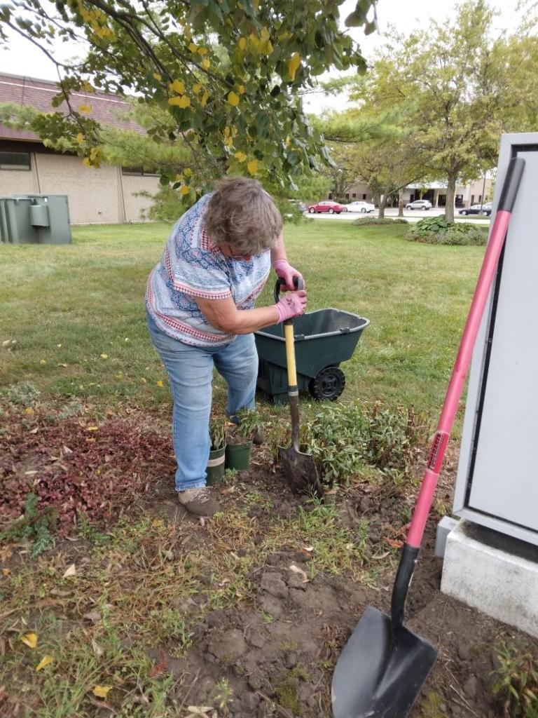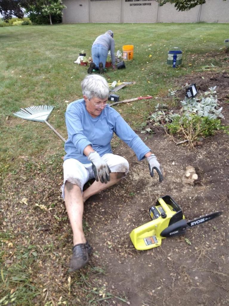 Jennie putting much effort into removing those perennials. Naida was there, too, helping with everything. Kay showed up, too.