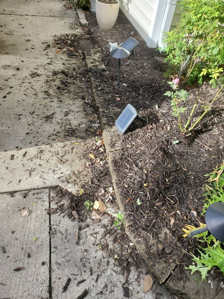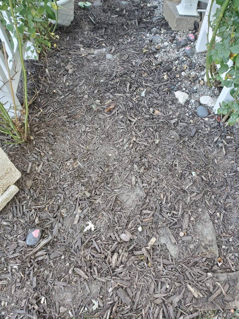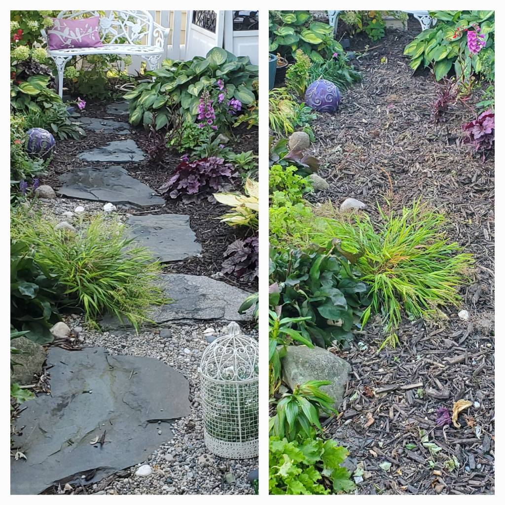 On left is my path in the memorial garden….on the right is the way the chickens decided it should be….all the mulch was scratched away from my plants, some roots exposed, All that work!