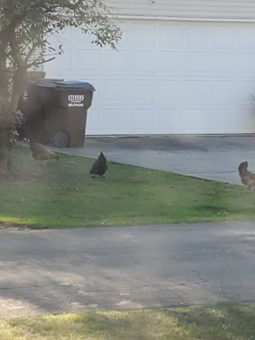 Oh look, there are chickens across the street. How cute they were! The must have come across Dixie from the farm next to Kroger. Often seeing them in the Kroger Parking lot. Everyone enjoys seeing chickens until they visit you.