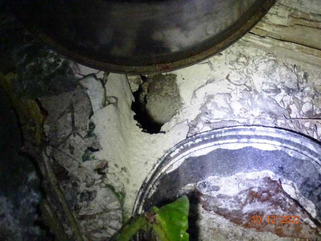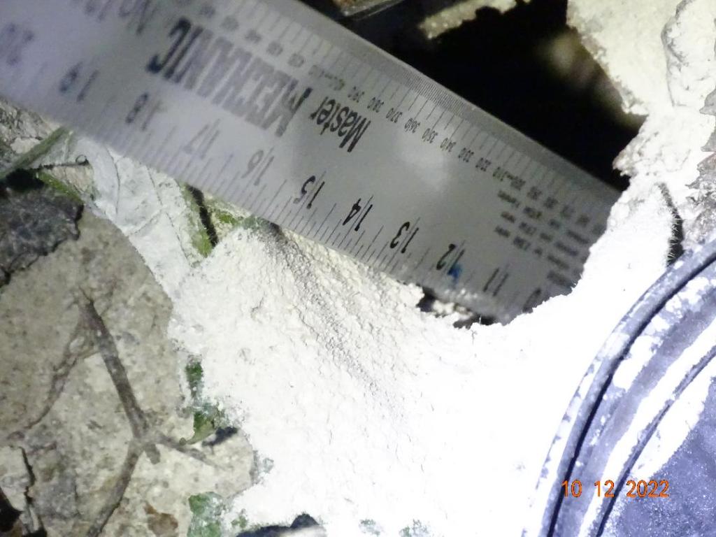 a CAVERN!! 13 inches deep-straight down & off on an angle on both sides, I believe was honeycomb!! What in the world did I find……Just how big is it??? Below.?? honeycomb on side of the hole matching one on the opposite side.