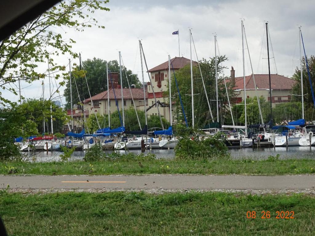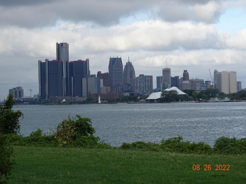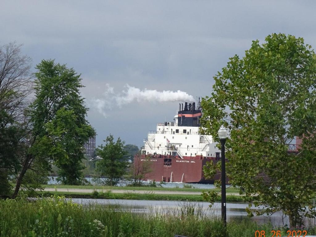 Sitting adjacent to the Detroit River which serves as a shipping channel. This large freighter passed by during