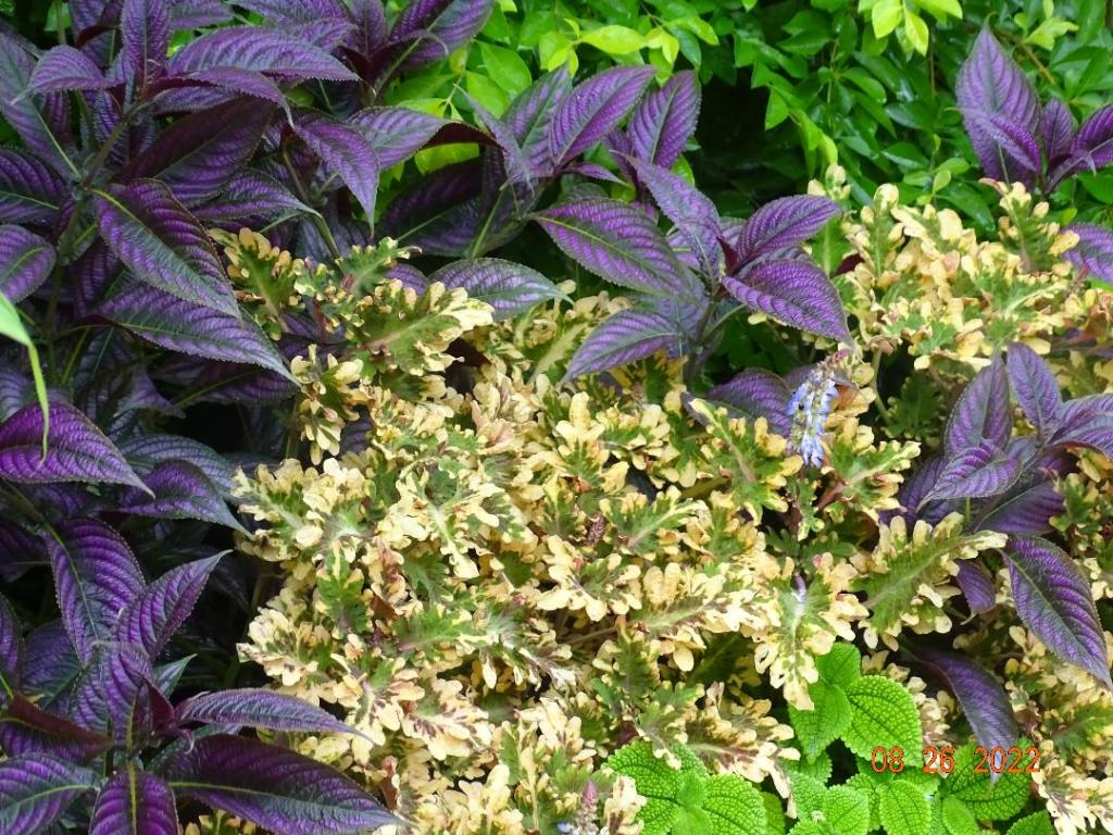 A lot of contrast among the plants, in the flowers & in the foliage as well…..