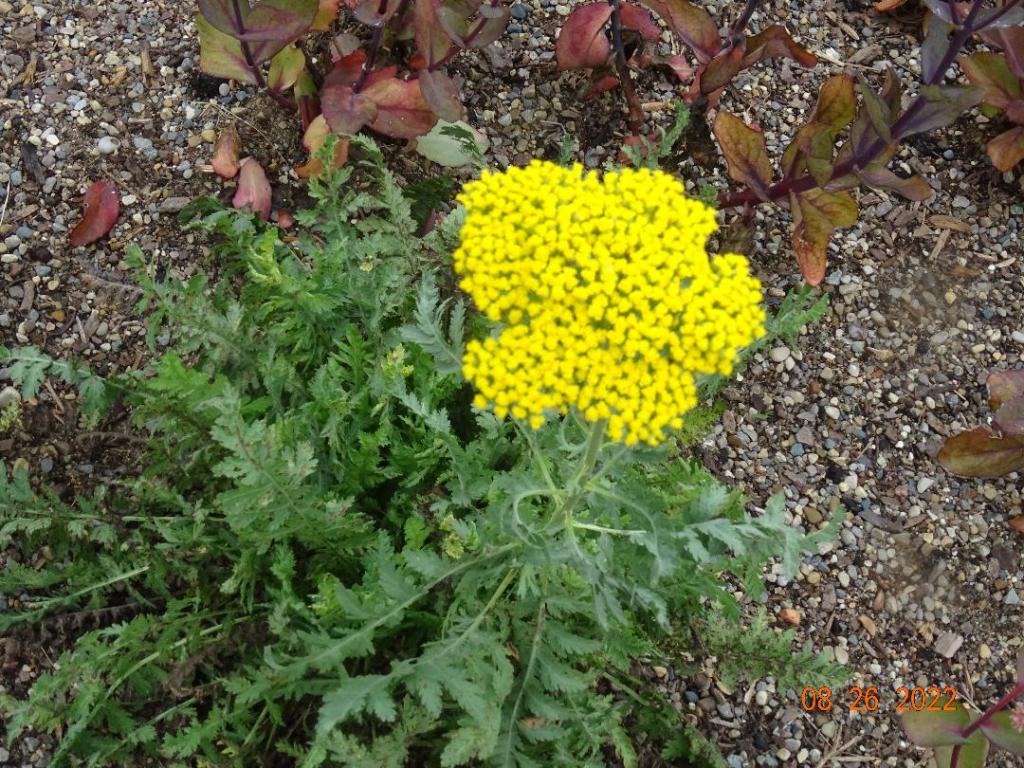 Achillea x ‘Moonshine’ (1-2 ft tall pale yellow, grayish foliage)***