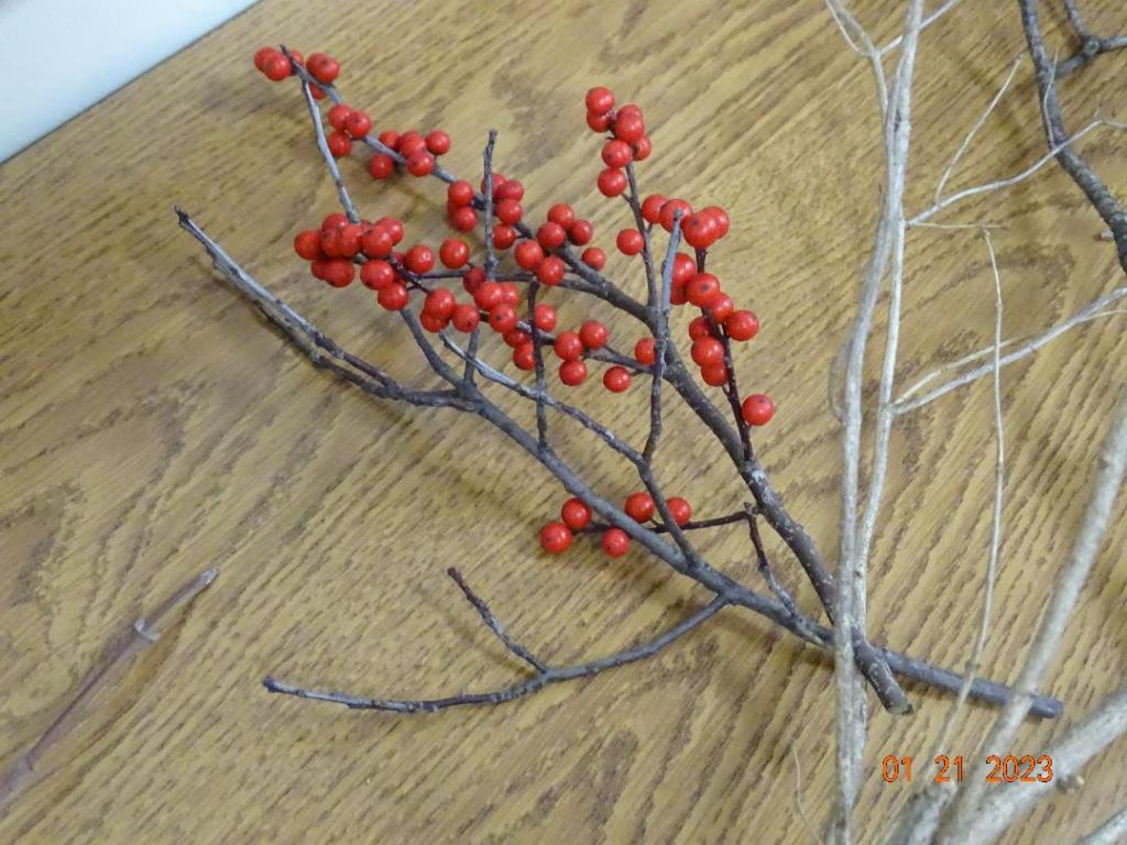 ABOVE:–the two darker wood specimens a female and a male winterberry….using berries or fruit is an easy way to help ID a tree or shrub.