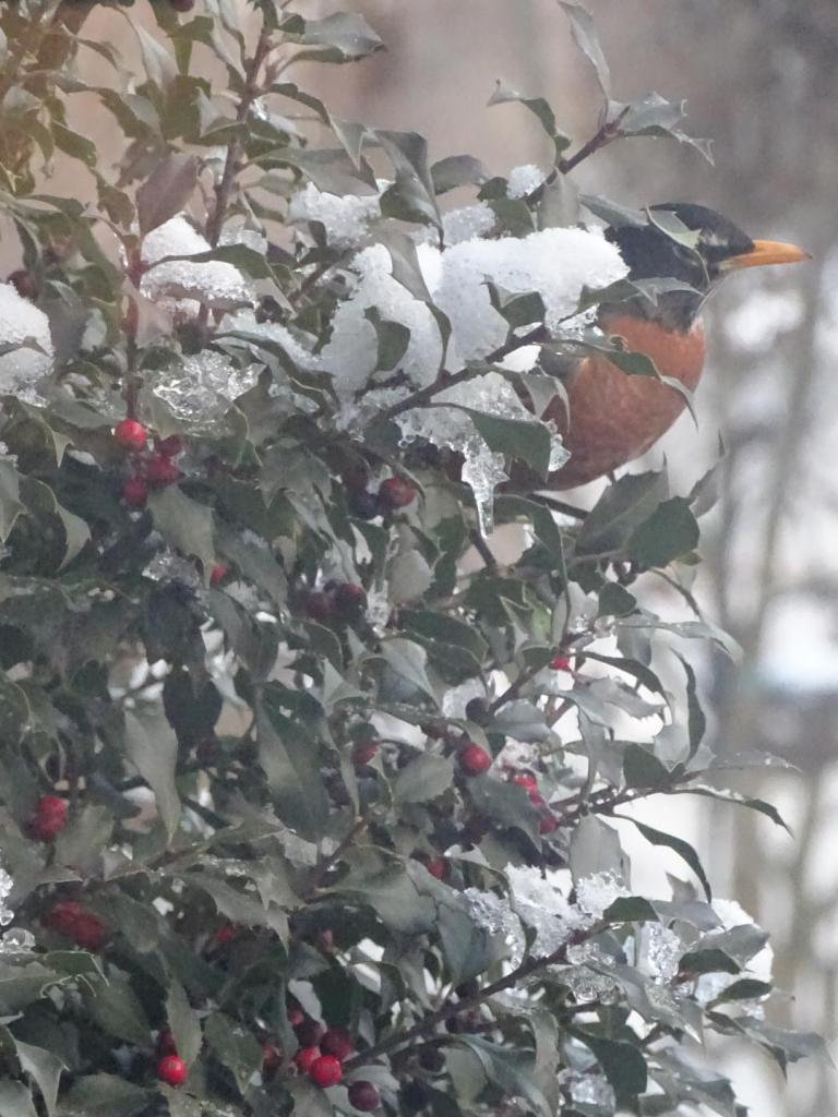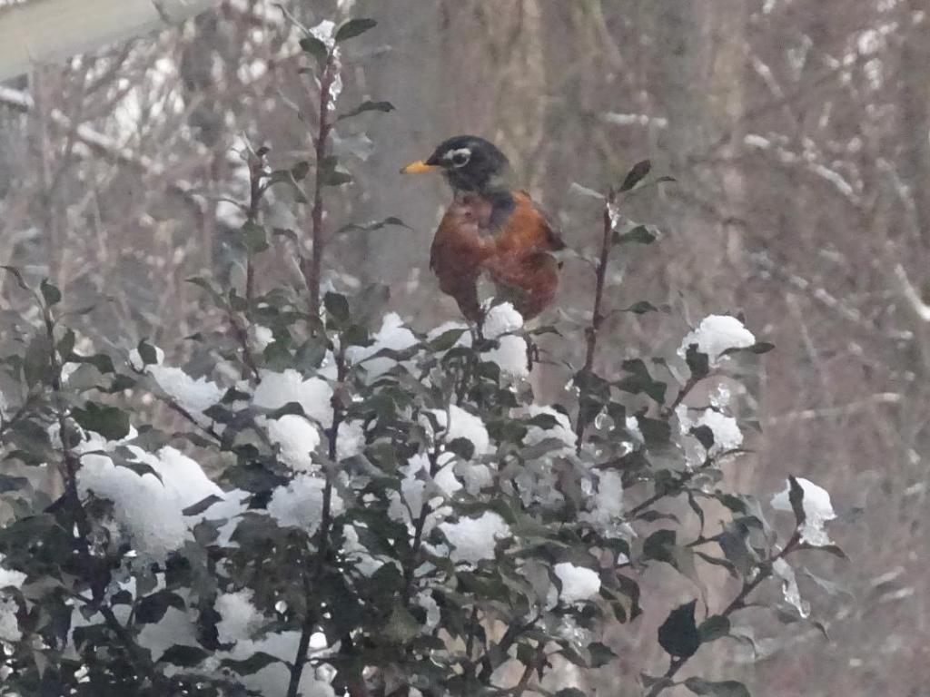The storm passed, the sun came out and LOOK who flew in with hopes of finding dinner…………