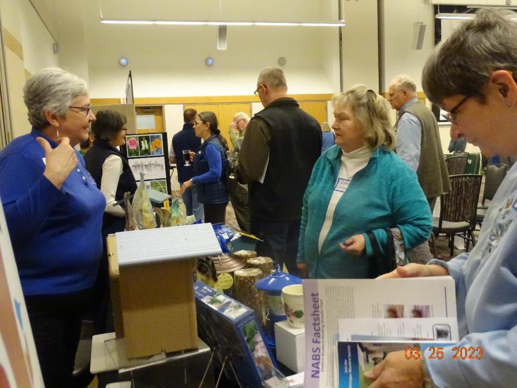 The large meeting room was fully encircled with various vendors offering information &/or merchandise.I left with a shirt, a tote and a feeder. Karen & Joan did not go home empty handed either.
