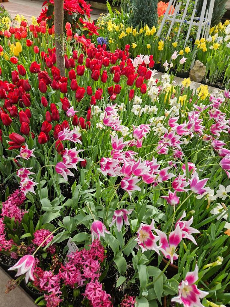 Spring Bulb Show at Hidden Lake Garden was full of aroma although most the Hyacinths were fading. So I then look up and who is there? Jennie. She brought her new neighbors to see the show. I brought a friend, Michele. Here are a few photos I took along the trail of beautiful blooms: