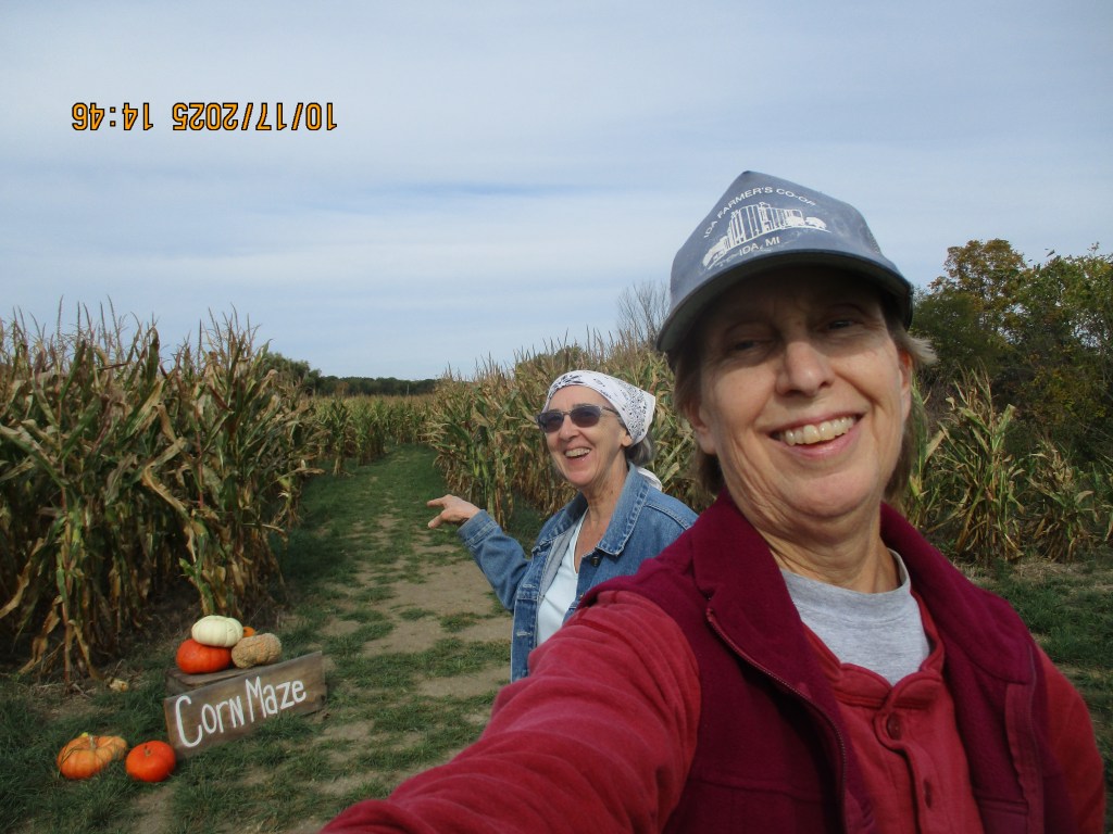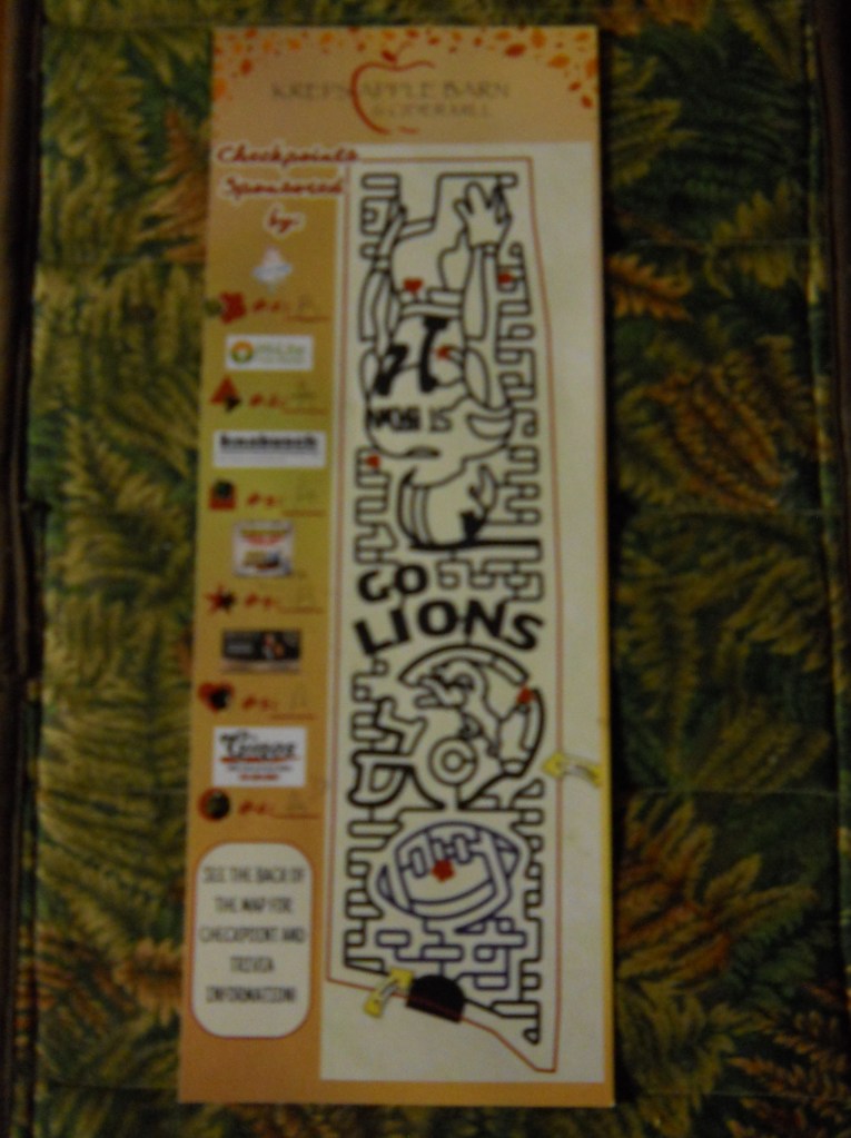On a recent sunny afternoon, two ladies entered one of our area Corn Mazes, did they find their way out? (insert img1052) They found their way through Lion St. Brown doing his famous headstand; GO Lions! (insert DSC133) They answered all the Lion trivia questions at each checkpoint. (insert img1050) Did they ever get to enjoy their cinnamon apple cider donut? Happy Fall!