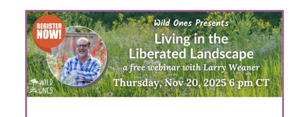 | Living in the Liberated Landscape: My Yard Thursday, November 20, 2025 | 6:00 p.m. CT / 7 ET / 5 MT / 4 PTPremiere + YouTube chatRegister: https://wildones.org/living-in-the-liberated-landscape/. All too often in our gardens and landscapes, we think of static compositions of carefully placed and managed plants. But our approach can be more dynamic and arguably more rewarding than that, by taking advantage of plants’ natural abilities to reproduce and proliferate. Learn how to design gardens that consider the reproductive abilities of plants, the ecological processes that affect those plants, and the wildlife that those plants can support. Drawing from 35 years of observation and analysis on his home property, Larry will show how this interactive approach can result in experientially rich, easily managed landscapes that give new meaning to the phrase “partnership with nature”.Bonus: Free Book GiveawayRegister and you’ll be automatically entered to win one of two copies of Garden Revolution by Larry Weaner and Thomas Christopher. Already registered? You’re in. Can’t make it live?Register anyway- we’ll send the recording link after the premiere. REGISTER NOWAbout the Presenter:Larry Weaner is an award-winning landscape designer and nationally recognized leader in ecological landscape practice. Since founding Larry Weaner Landscape Associates in 1982, his work has spanned over 20 states and the U.K., blending ecological restoration with the traditions of garden design. His projects have been featured in The New York Times, The Wall Street Journal, Landscape Architecture Magazine, and many others. In 1990, Larry launched (NDAL), a groundbreaking educational series that has become a cornerstone for professionals advancing ecology-based design. He is also the co-author of Garden Revolution (Timber Press, 2016), which received the American Horticultural Society’s Book Award in 2017. Larry’s accolades include the Lady Bird Johnson Environmental Award, the APLD Award of Distinction, and the American Horticultural Society’s LandscapeDesign Award. He is an honorary member of the Garden Club of America and serves as an Honorary Director for Wild Ones.Why are we sending you this? Because Wild Ones believes that a healthy planet starts with native plants. Our free webinars are one way we connect more people to evidence-based solutions rooted in native plants and ecological landscapes. If this aligns with your values, we hope you’ll register, share with a friend, or consider making a gift to support more programs like this. |