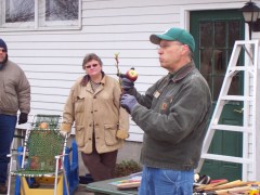 What to Prune: Bob stressed the need for developing a strong structural skeleton (scaffold) for the tree to be the most productive. He recommends a modified central leader form for all pome fruits and an open center, heart shaped structure for stone fruits. After making the choice of the branches to keep to establish the scaffold, the annual pruning shifts to being a maintenance chore. Dead wood, watersprouts, suckers, inward growing and crossing branches all should be removed.